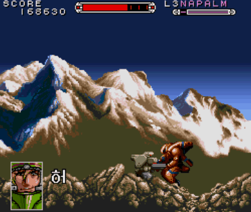 중장기병 발켄은 1992년 그 유명한 랑그릿사를 제작한 메사이어(MASAYA)에 의해 슈퍼패미콤으로 발매된 게임입니다. 장르는 액션으로, 스토리는 전쟁으로 인하여 입대한 파일럿의 이야기를 다루고 있으며, 스토리가 진행됨에 따라 전쟁에 대해 생각하게 하는 게임입니다. 플레이어는 주인공이 탑승하고 있는 로봇을 직접 컨트롤하여 게임을 진행하는데 빠른 반응과 판단을 요구하기 때문에 액션에 익숙하지 않은 몇몇 유저는 어려움을 느끼는 게임입니다. 기본적으로 발켄과 주먹이 무기로 제공되고 있으며, 스테이지를 진행하다 보면 아이템 형식으로 미사일과 레이저 무기를 추가로 획득합니다. 기본으로 제공하는 무기와 추가로 획득하는 무기를 최종 레벨로 업그레이드하면 충분히 강하지만 이런 무기들보다 더 강한 무기인 네이팜이 게임 속에 존재합니다. 이번 시간에는 숨겨진 무기인 네이팜을 얻는 방법과 업그레이드를 해금시켜주는 방법에 대하여 알아보도록 하겠습니다.