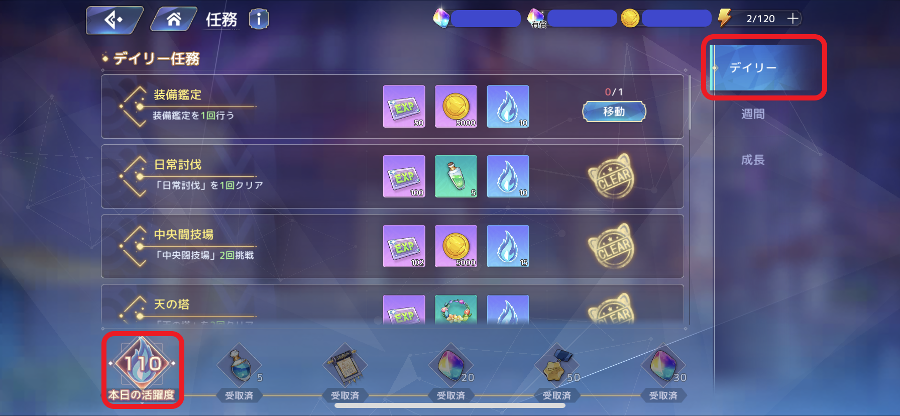 데일리 미션이 하루에 최대 120점을 획득할 수 있으며, 클랜 배틀을 위해서라도 데일리 미션은 전부 다 완수해야 합니다.