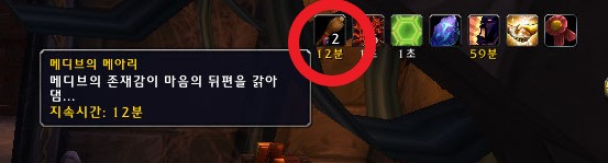 메디브의 메아리 버프가 끝나기 전에, 두 번째 수정을 획득하면 아래와 같이 메디브의 메아리 버프가 2 중첩이 되며, 지속시간(제한시간)이 증가됩니다.
