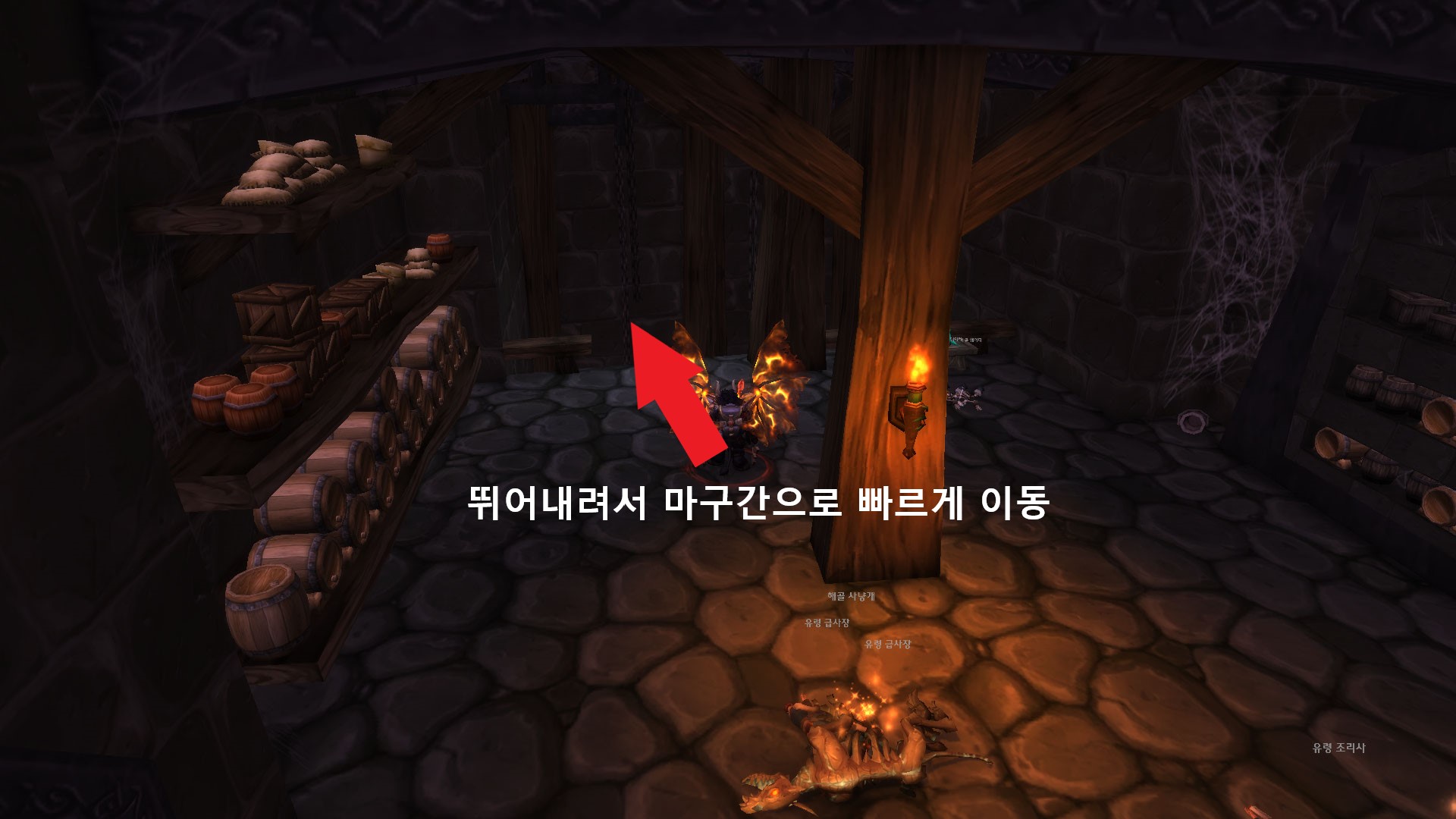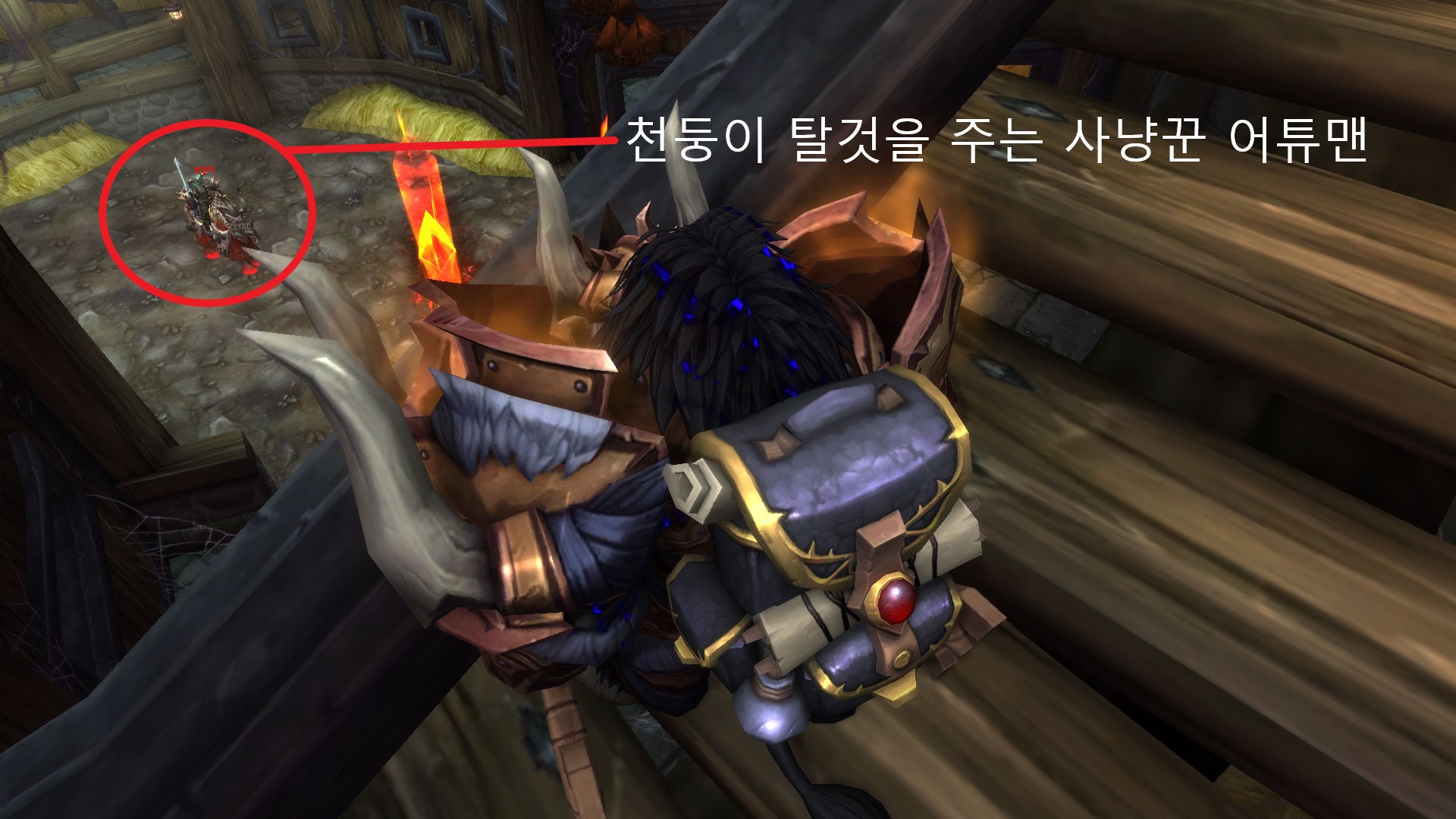 방 끝에는 뛰어내릴 수 있는 공간이 있는데, 낙하 대미지를 입기 때문에 체력을 일정 수준 회복하고 난 뒤, 뛰어내리도록 합시다. 그리고 마구간으로 이동하면, 중간에 사냥꾼 어튜멘(천둥이 탈것을 아주 낮은 확률로 주는 네임드 보스)이 있는데 제한시간이 있기 때문에 일단 무시하시고 계단을 통해 마구간 상층으로 이동합니다.