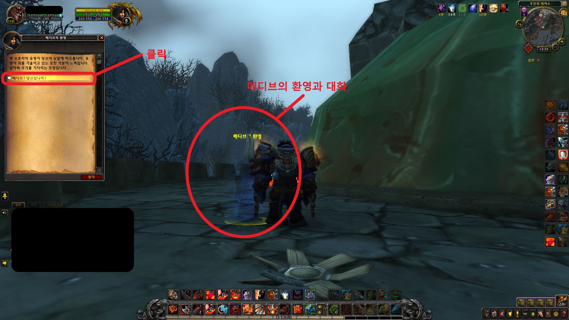 메디브의 현신 버프가 있는 동안 주인의 테라스에 있는 중립 메디브 NPC와 대화를 해야 파멸의 어둠을 소환할 수 있기 때문에 빠르게 주인의 테라스로 이동해야 합니다.