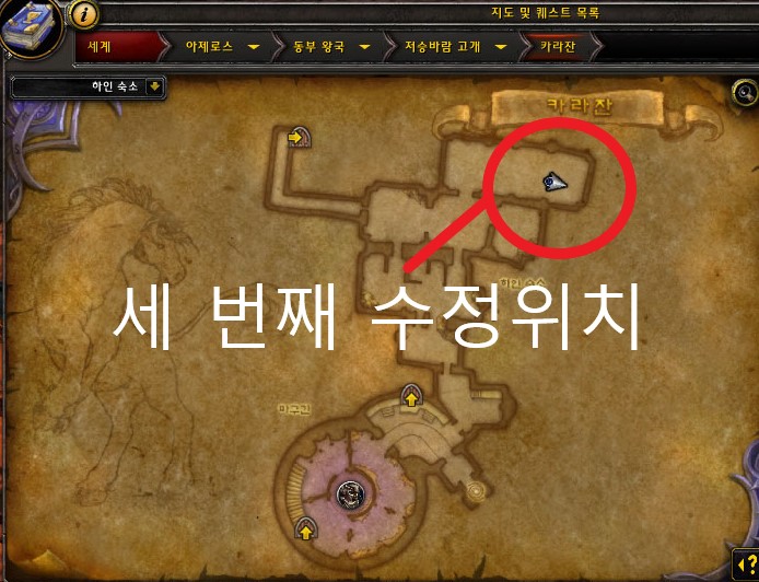 그리고 지상에 있는 카라잔의 입구는 불타는 성전 확장팩 때 공개된 카라잔 레이드 던전의 입구이기 때문에 헷갈려서 잘못 진입하지 않도록 합니다.