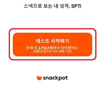 ● snackpot 홈페이지에 접속하여 테스트 시작하기 버튼을 클릭합니다.