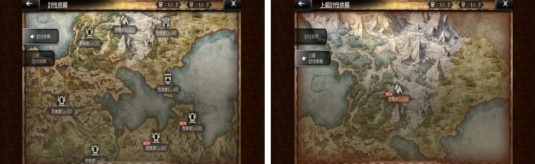 토벌 퀘스트는 메인 스토리를 진행하다 보면 진행이 가능한 콘텐츠 중 하나입니다. 토벌 퀘스트는 각 마을의 여관에 있는 NPC를 통해 진행할 수 있는데, 난이도가 어느 정도 있으므로 각 토벌 퀘스트에 표시되어있는 추천 레벨을 참고하셔서 캐릭터들을 육성한 뒤 도전해보시길 바랍니다. 토벌 퀘스트를 통해 5성으로 진화하는데 필요한 재료 및 캐릭터 조각을 얻을 수 있습니다.