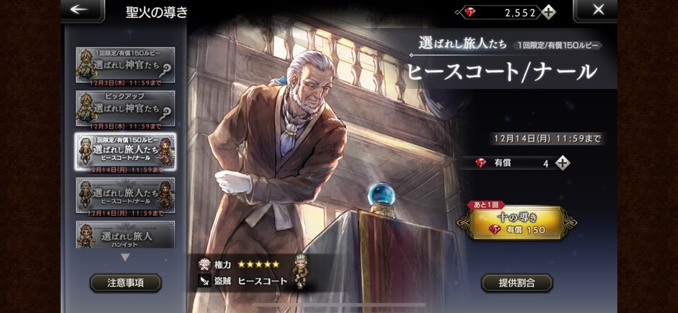 옥토패스 트래블러 대륙의 패자의 캐릭터 뽑기에는 유료, 무료 루비를 사용할 수 있습니다. 그리고 어나더 에덴과 같이 유료 루비로만 진행할 수 있는 캐릭터 뽑기가 있는데 5성 확정 가챠, 10 연차 반값 가챠 등이 있습니다. 참고로 처음 게임을 시작하고 96시간 내에 확정으로 5성 하나 이상을 얻을 수 있는 유료 캐릭터 뽑기가 있습니다.