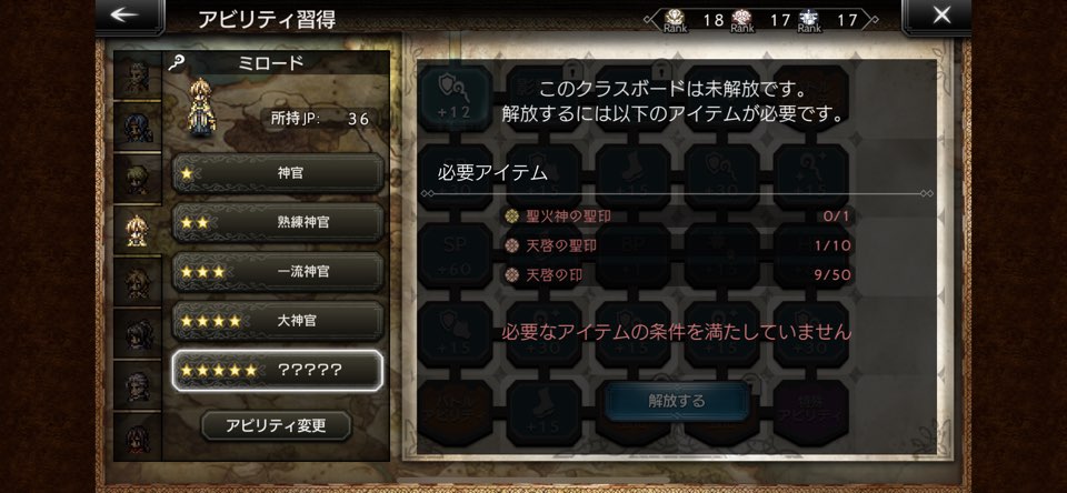 파티를 터치하면 위와같이 현재 파티 구성원과 파티에 대한 정보를 알 수 있습니다. 여기에서 파티 구성원을 바꿀 수 있으며, 어떤 유닛들을 보유하고 있는지 알 수 있습니다. 그리고 각 캐릭터의 어빌리티를 찍을 수 있습니다.