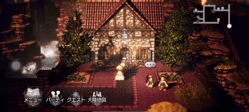 옥토패스 트래블러 대륙의 패자는 따로 조작 버튼이 없이 터치만으로 이동이 가능합니다. 화면 중앙 기준으로 좌, 우 터치를 통해 캐릭터들을 원하는 방향으로 이동시킵니다. 갈림길에서는 이동할 수 있는 화살표가 화면에 표시되는데 해당 화살표의 방향대로 스와이프를 하면 해당 방향으로 이동이 가능합니다. 또는 미니맵을 터치하고 해당 맵에서 원하는 지역을 터치하면 캐릭터들이 알아서 그곳으로 이동하기도 하며, NPC의 말풍선을 터치하면 해당 NPC로 캐릭터들을 이동시킬 수 있습니다.