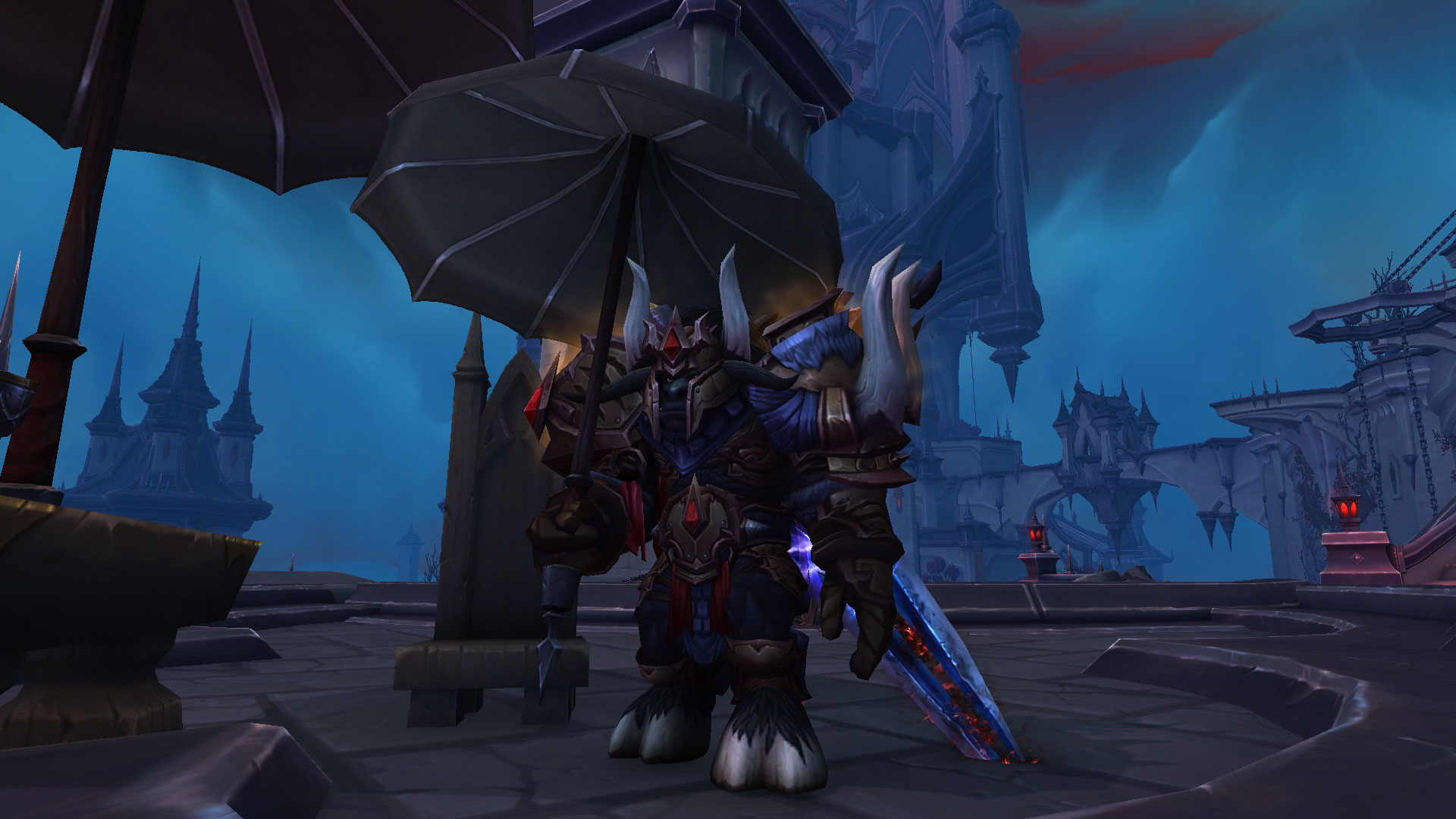 멋들어진 검은색 양산은 위와같이 소환한 상태로 스킬을 시전 할 수 있습니다. 레이드나 일반 던전에서 룩으로도 활용이 가능한 장난감인데요, 룩도 괜찮지만 일정 높이 이상에서 떨어지면 낙하산으로도 사용이 가능합니다.