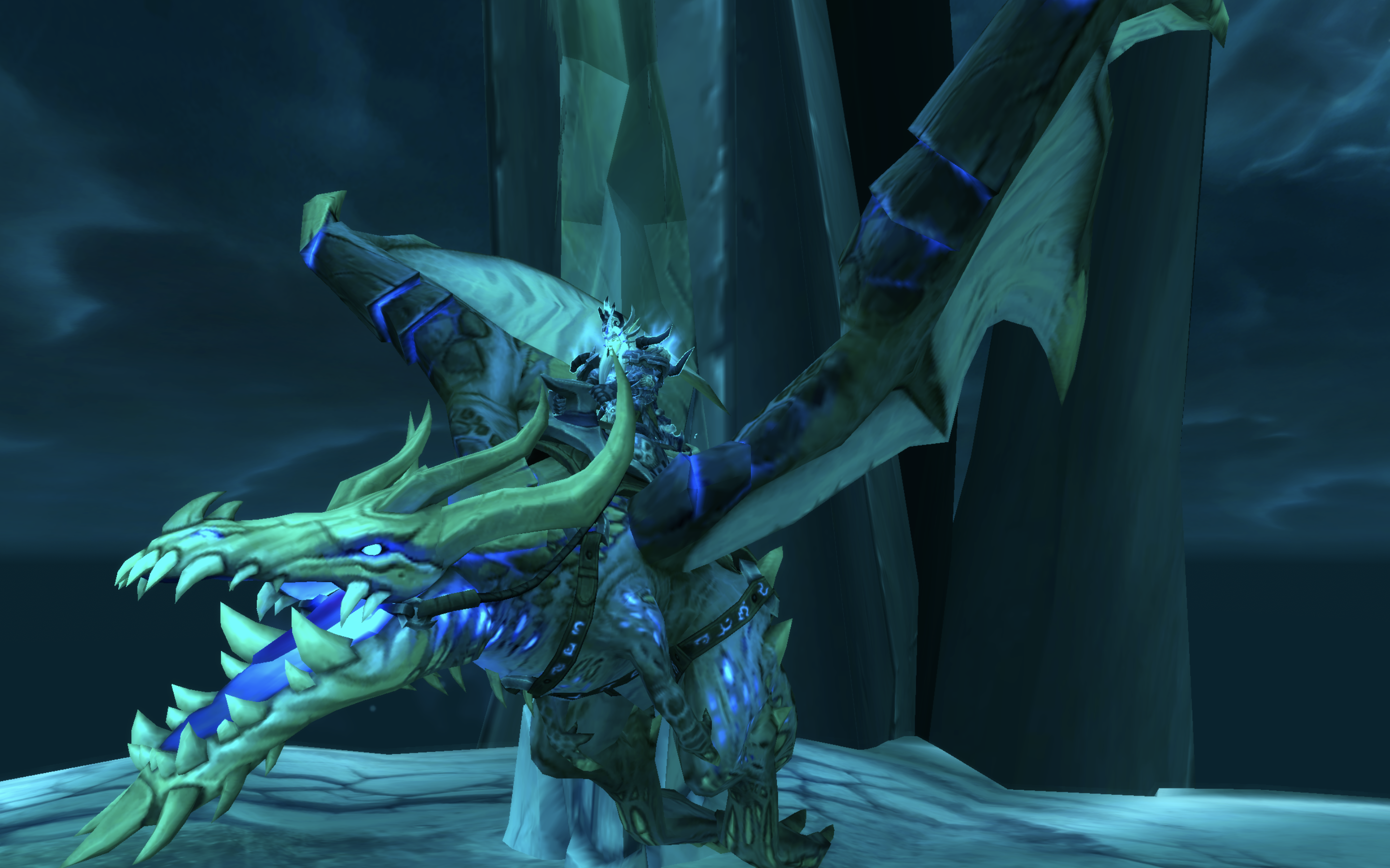 과거에 죽음의 기사 초반 퀘스트를 해본 사람이나 해보지 않은 사람이나 탈것을 얻기 위한 죽음의 기사 초반 퀘스트는 지겨운 작업이 될 수도 있습니다. 하지만 죽음의 기사 초반 퀘스트를 해보지 않은 사람에게 있어서는 죽음의 기사가 어떤 과정을 거쳐서 리치 왕의 속박에서 벗어나는지 알 수 있으며, 탈것을 얻음으로써 탈것 카운트를 늘릴 수도 있습니다. 서리고룡족 원시고룡의 뼈대는 기존의 원시고룡을 그대로 따와서 감정표현은 딱히 특이한 점이 없지만 소환할때의 특별한 연출 그리고 색다른 외모는 충분히 얻을 가치가 있습니다.