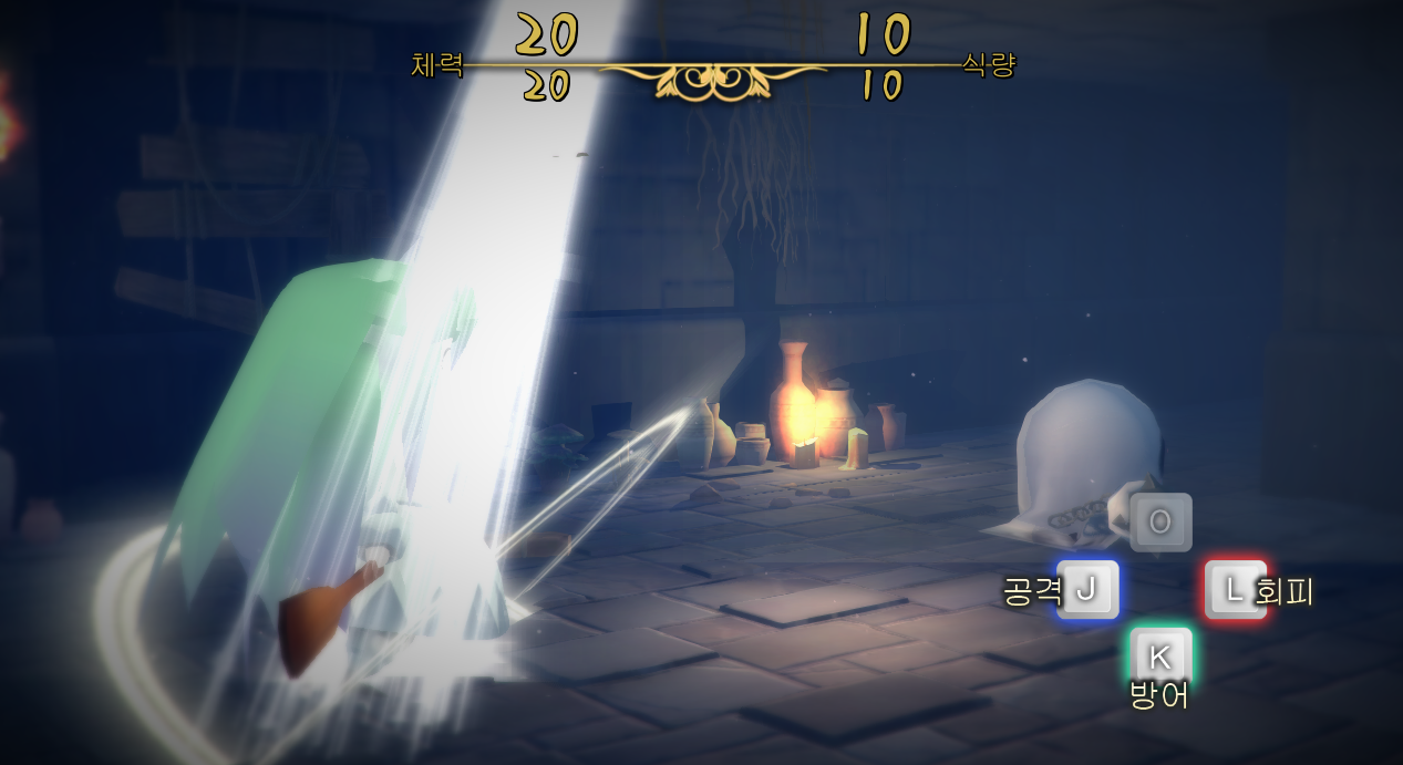 이제부터 본격적으로 스토리가 진행된다. RPG로 바뀌다보니 1부에는 보이지 않던 체력과 식량이 표시된다. 체력은 말 그대로 캐릭터의 체력을 나타내며 0이되면 죽게된다. 그리고 식량도 마찬가지로 0이되면 죽게되는데 던전을 진행하다 일정시간이 지나면 하나씩 줄어든다. 식량은 던전내에서 구할 수 있으니 맵을 전체적으로 돌아다니는걸 추천한다.