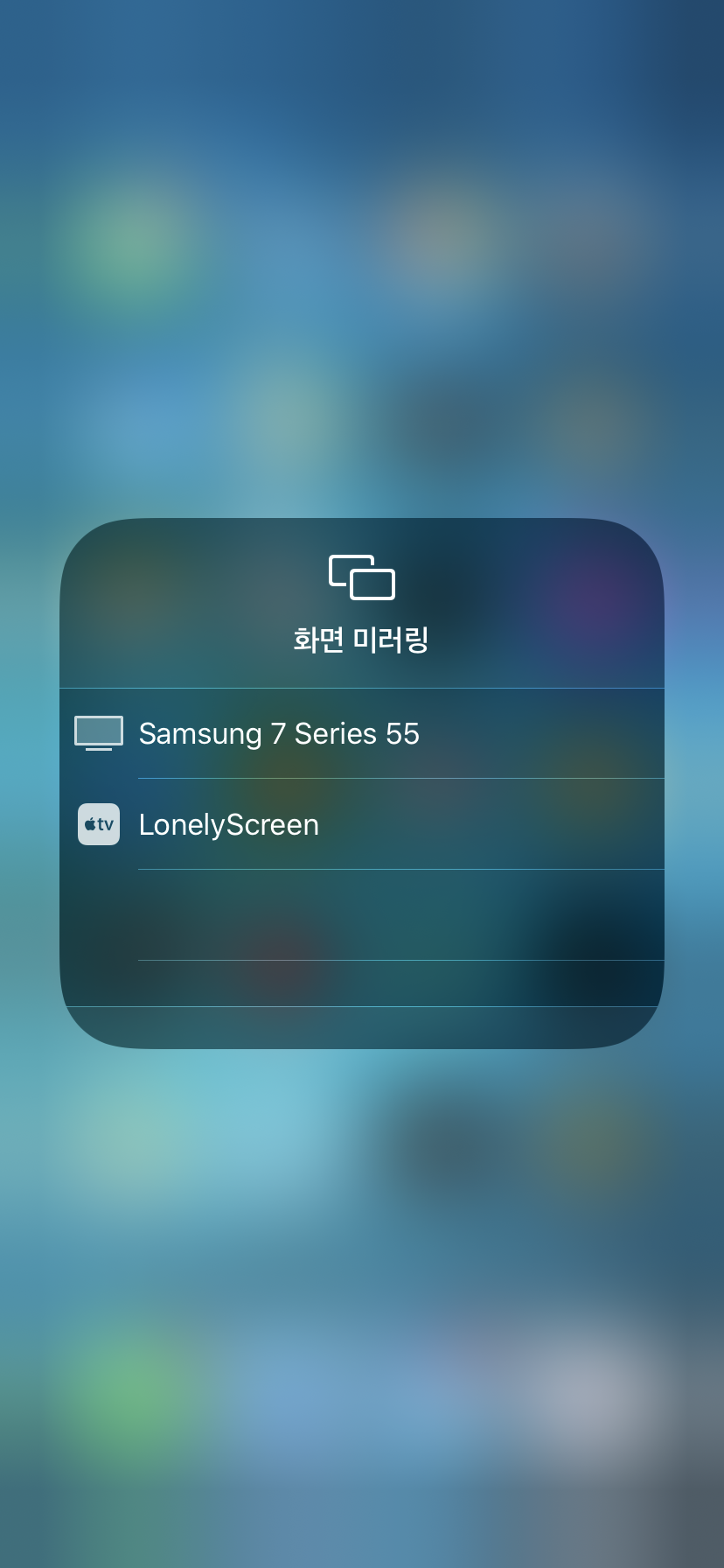 이제 아이폰으로 와서 화면 미러링을 켜면 론리스크린 목록이 나오는데 이를 터치하면 컴퓨터 화면에 아이폰의 화면이 미러링 되어 나온다.