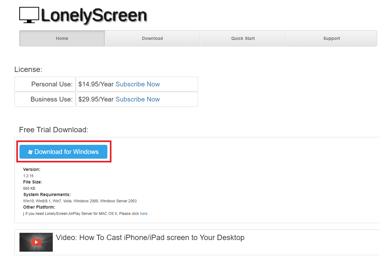 먼저 구글에서 론리스크린이라고 검색하고 나오는 공식 홈페이지에 접속하여 무료 버전을 다운로드하자.
