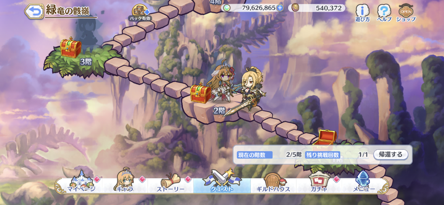 ◎가챠: 노멀(하루 2번 무료)가챠와 캐릭터 가챠가 있는 곳이다. 참고로 매번 픽업캐릭터가 0.7%의 확률을 가지고 있다.