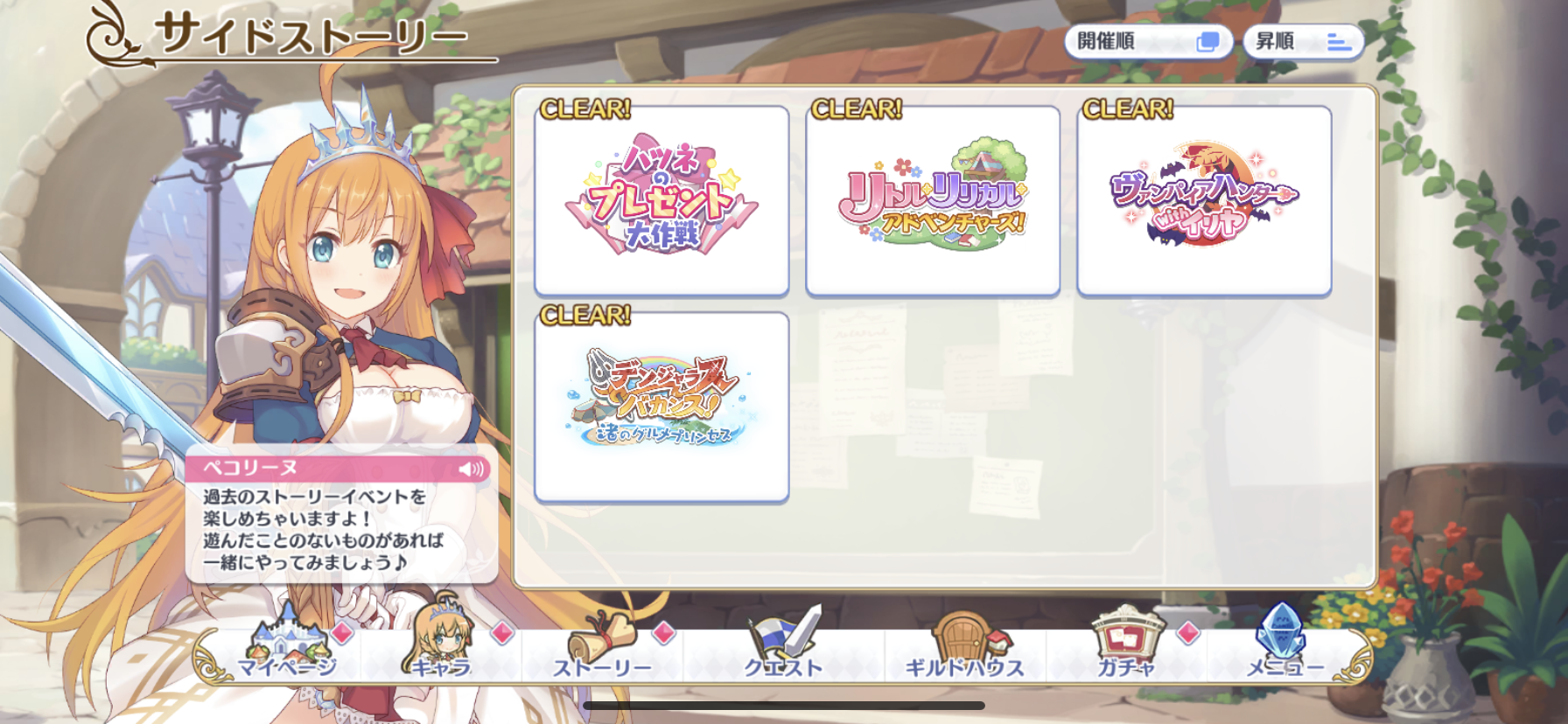 ◎스토리: 메인스토리, 이벤트 스토리, 길드 스토리를 볼 수 있는곳이다. 한번 본 스토리를 계속해서 볼 수 있으니 스토리를 또 보고싶으면 여기서 다시 볼 수 있다.